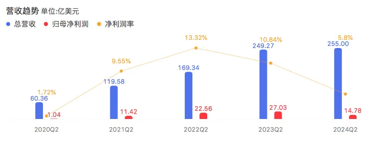On July 24, Tesla released its financial report for the second quarter of 2024. The data shows that in the second quarter of 2024, Tesla’s revenue was 25.5 billion US dollars, with a slight increase of 2.30% year-on-year; in terms of net profit, Tesla’s performance was not optimistic, which was 1.478 billion US dollars, with a year-on-year decline of 45.32%; the gross profit was 4.578 billion US dollars, and the gross profit margin was 18%.