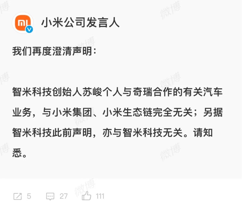 Today, Su Jun, CEO of Zhimi Technology and chief product officer of Chery iCAR Automobile, officially announced the iCAR V23 on Weibo, mentioning that it is “Chery & Zhimi”, intended to emphasize the joint car-making between Chery and Zhimi Technology.