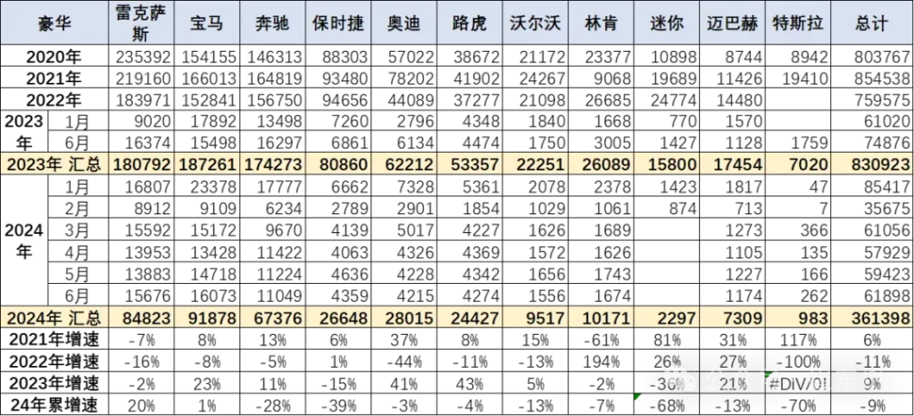 Judging from the year-on-year growth rate of sales in the first half of the year, Lexus has a relatively obvious increase, and it is the brand with the highest year-on-year growth in the list. It should be noted that before this, Lexus has shown a declining trend for three consecutive years. For reference, from 2021 to 2023 in the same period, Lexus decreased by 7%, 16% and 2% respectively. Regarding the reason for the sales decline, industry insiders believe that on the one hand, the purchase preference of the domestic market has changed. With the rise of domestic independent brands and new forces, the growth momentum of new energy vehicle brands is strong, which squeezes the market share of luxury brands and imported cars; on the other hand, it is the improvement of consumers’ perception of the brand image, and the high-end image of imported brands begins to weaken.